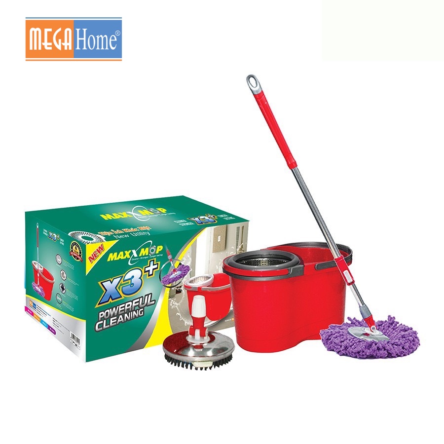Nhà cửa & Đời sống > Dụng cụ chăm sóc nhà cửa > Cây lau nhà || Bộ lau nhà Maxx Mop X3+ Megahome dung tích 16L bao gồm mâm lau đầu tròn và mâm cướcCòn hàng