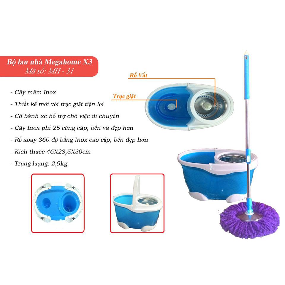Tên sản phẩm: Bộ lau nhà Megahome X3Đặc điểm nổi bật: