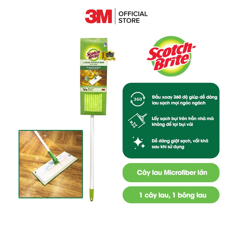 Cây lau nhà Microfiber cỡ lớn Scotch Brite 3M đa năng, thấm hút nước tốt