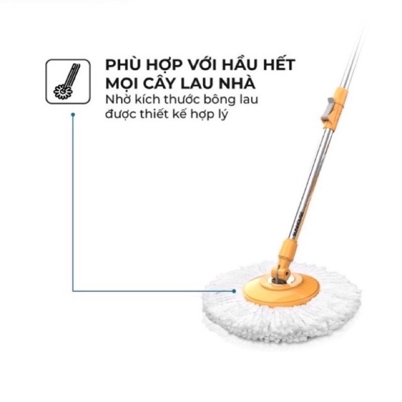 - Đường kính đĩa lau phù hợp phần lớn cây lau nhà xoay 360 độ