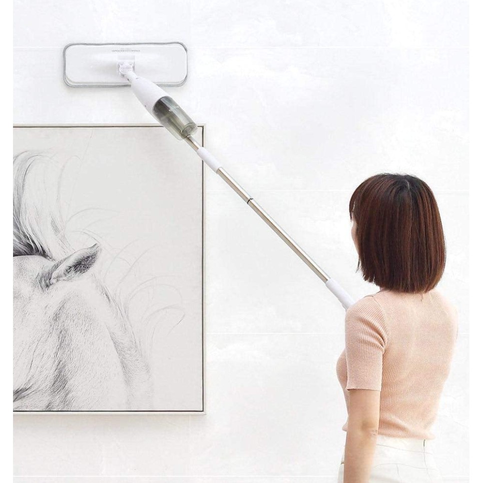 - Tay cầm dài 1.2m của cây lau nhà sẽ cho phép bạn làm sạch các vị trí trên cao như tường nhà hay gầm ghế một cách dễ dàng, thay vì vừa phải kiễng chân lên cao hay cúi người xuống thấp vừa lau nhà theo kiểu truyền thống.