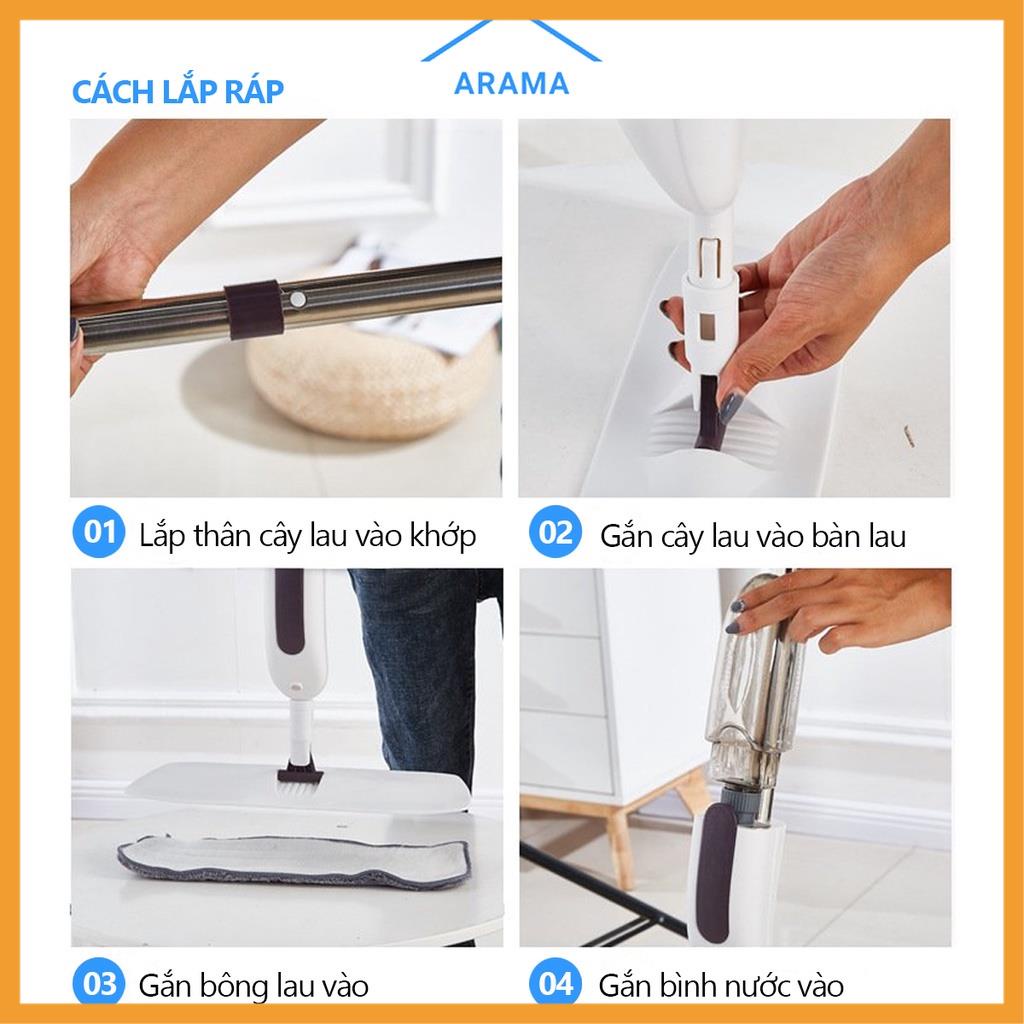 Cây lau nhà phun sương 360 độ thông minh chắc chắn Arama Shop chổi lau nhà phun nước tự vắt tiện lợi