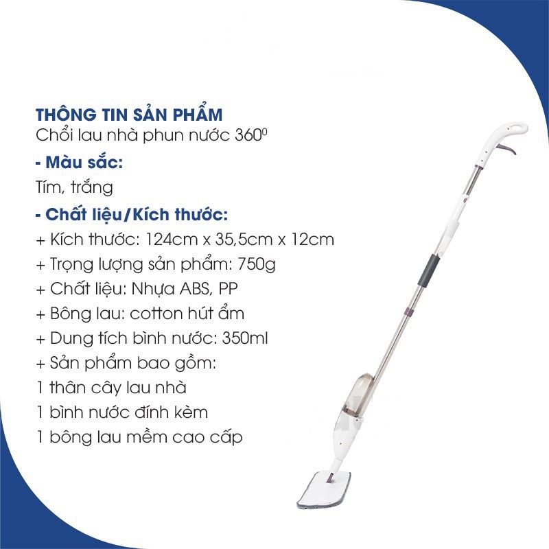 - Sản phẩm bao gồm: 1 thân cây lau nhà, 1 bình nước đính kèm, 1 bông lau mềm cao cấp