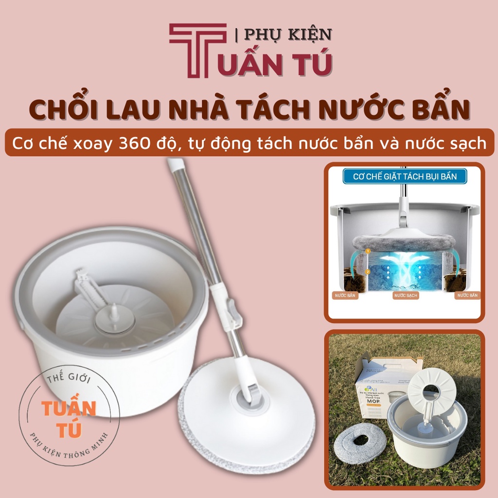 Cây lau nhà tách nước bẩn - Bộ chổi lau nhà tách nước bẩn tự vắt xoay 360 độ thông minh - Tuấn Tú Office Store