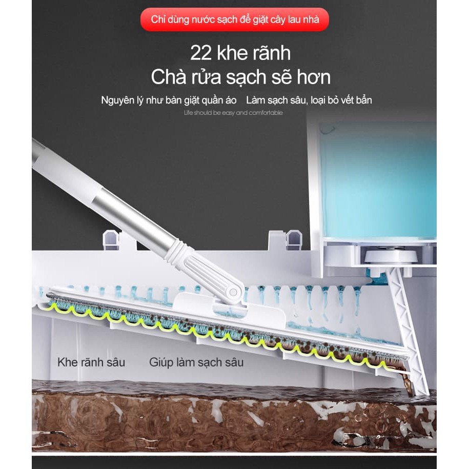 Bộ Lau Nhà Tách Nước Bẩn Công Nghệ Nhật Bản không giặt tay xô đựng TPR ABSMột thiết kế mới năm 2020 thay thế cho mẫu cũ