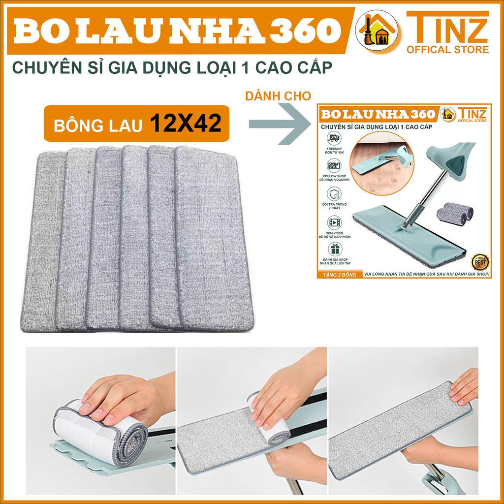 Nhà cửa & Đời sống > Dụng cụ chăm sóc nhà cửa > Cây lau nhà || Bông lau nhà thay thế chữ nhật 12x42 cho cây lau nhà tự vắt TINZCòn hàng
