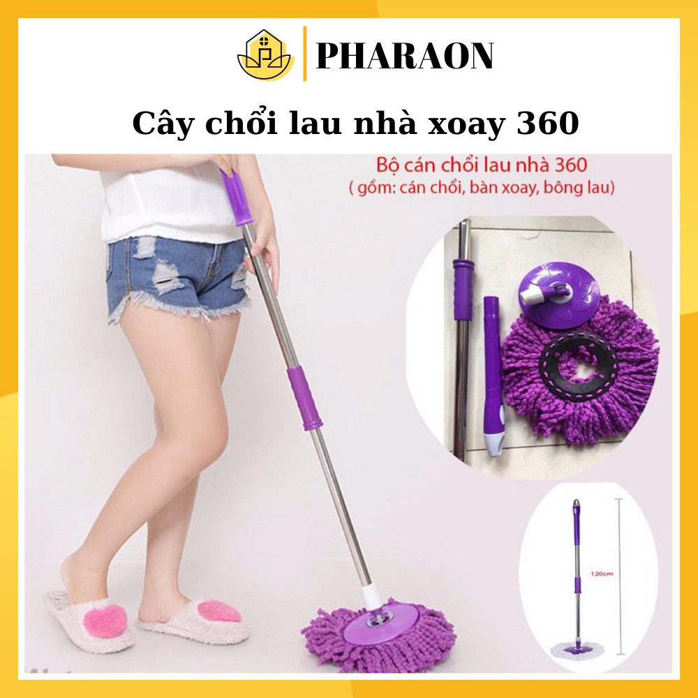 Bộ lau nhà thông minh 360 độ - Bộ lau nhà cao cấp cây inox kèm bông lau - PHARAON