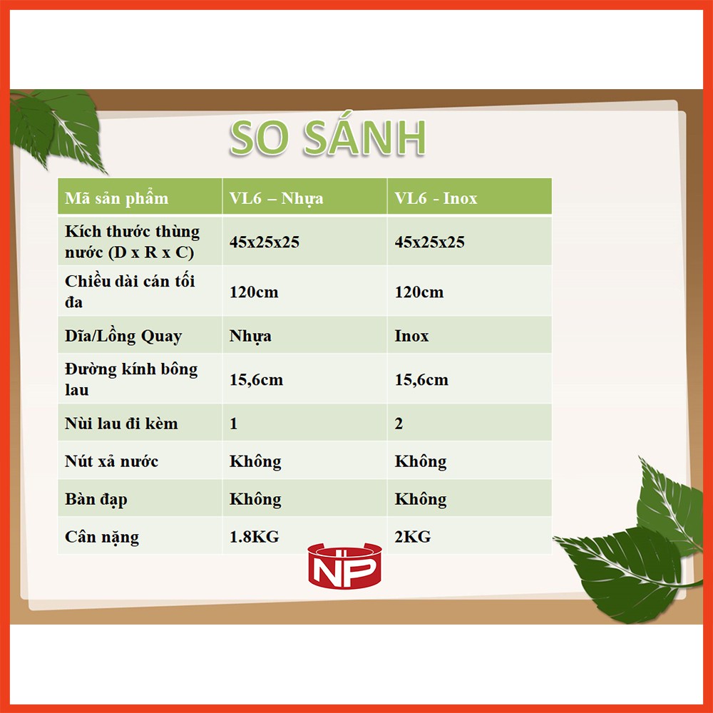 Bộ lau nhà thông minh 360 độ tự vắt VL6 - cây lau inox mâm nhựa