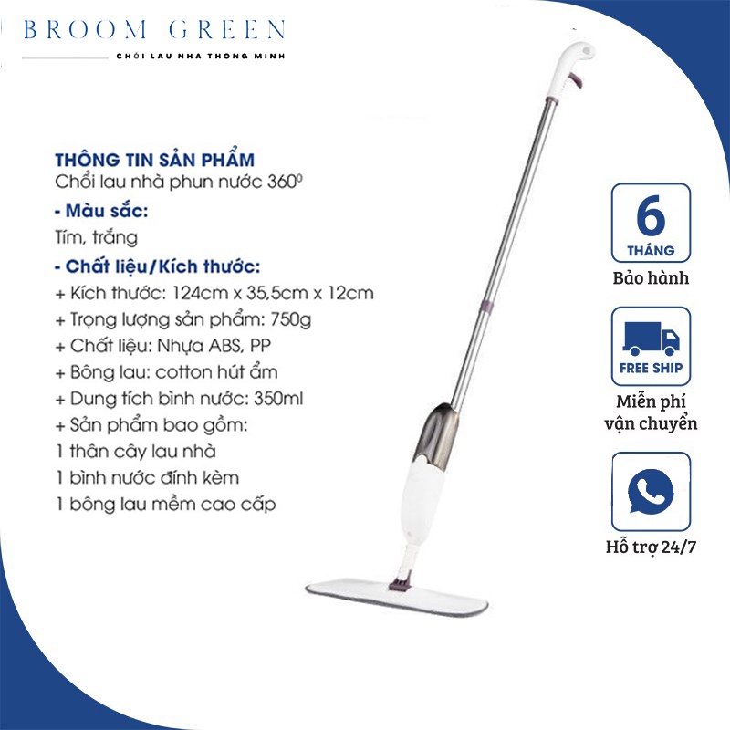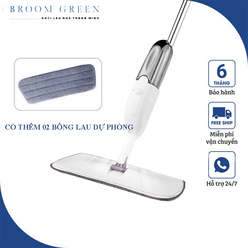 Cây lau nhà thông minh 360 độ xịt nước phun sương, chổi lau nhà thông minh tặng kèm 02 bông lau dự phòng