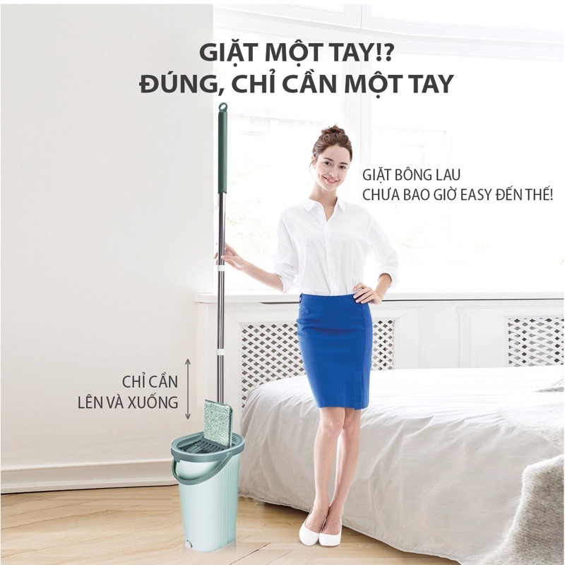 - Trong quá trình lau dọn, thao tác kéo và đẩy rất nhẹ nhàng cũng như việc giặt và vắt khô bông lau thì một xô nước là đủ để giải quyết toàn bộ phòng ngủ, hoặc phòng khách của bạn.