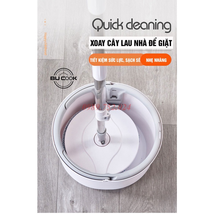 Giới thiệu Bộ lau nhà thông minh BUCOOK-K8 thùng vắt xoay tròn nhựa PP, Cán inox dài 134cm, miếng lau 25cm Microfiber