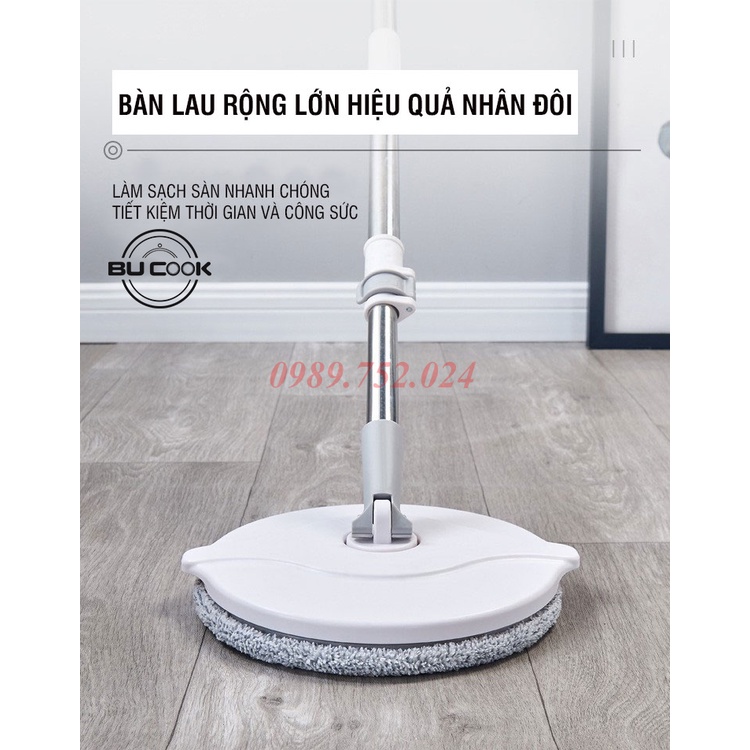 Nhà cửa & Đời sống > Dụng cụ chăm sóc nhà cửa > Cây lau nhà || Bộ lau nhà thông minh BUCOOK-K8 thùng vắt xoay tròn nhựa PP, Cán inox dài 134cm, miếng lau 25cm MicrofiberCòn hàng