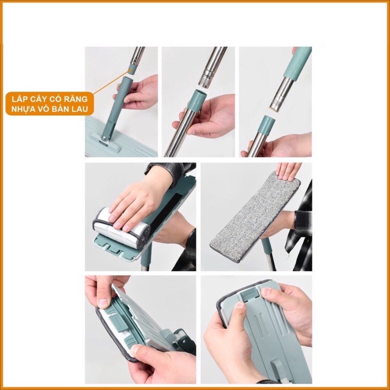BỘ LAU NHÀ 360 ĐỘ SANG TRỌNG - CÂY CÓ MĂM LAU DẠNG CHỮ NHẬT LAU CỰC SẠCH