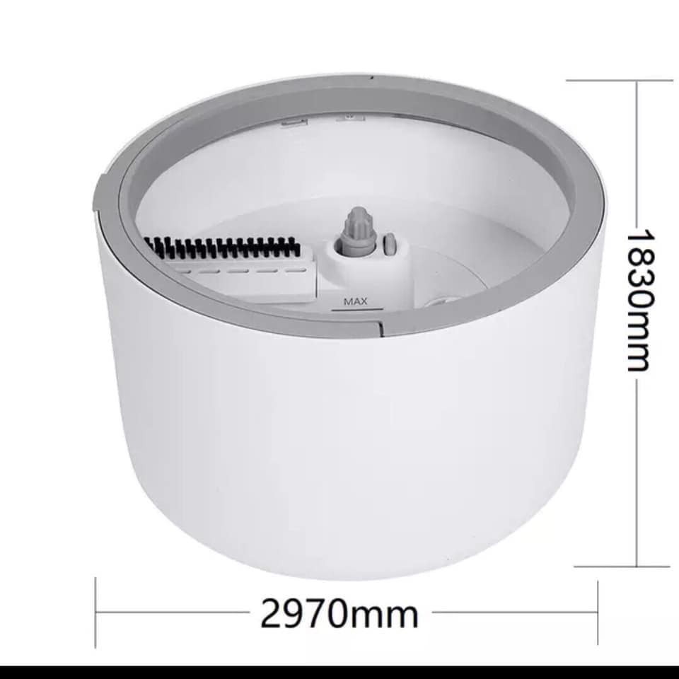 - Đổ nước + nước lau nhà vào thùng chứa. Chú ý vạch nước tối đa trên thùng chứa (khoảng 2 lít)