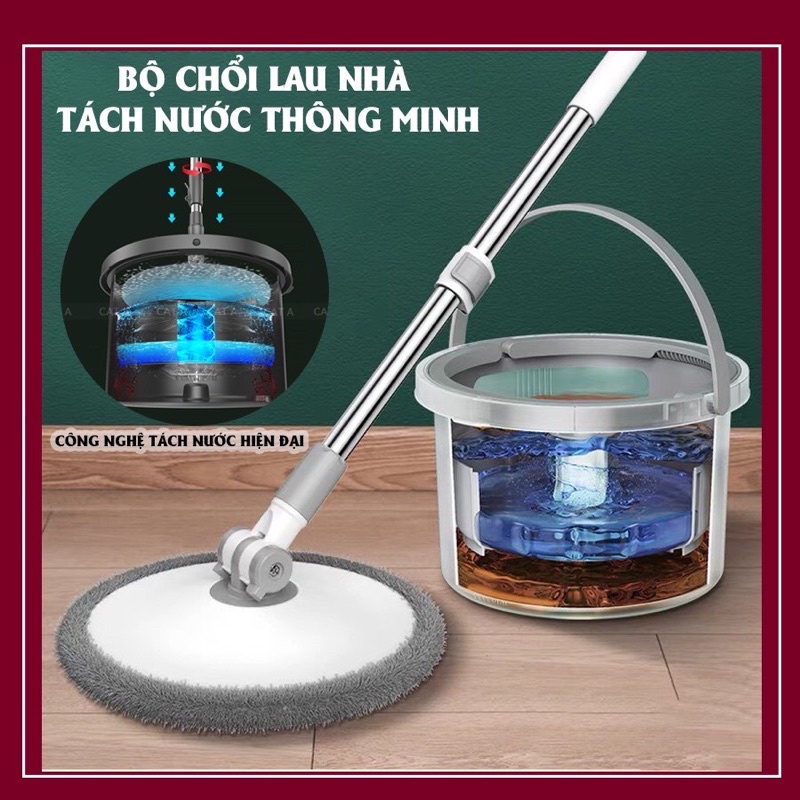 Nhà cửa & Đời sống > Dụng cụ chăm sóc nhà cửa > Cây lau nhà || Bộ lau nhà thông minh K8 thùng vắt xoay tròn nhựa PP, Cán inox dài 134cm, miếng lau 25cm MicrofiberCòn hàng