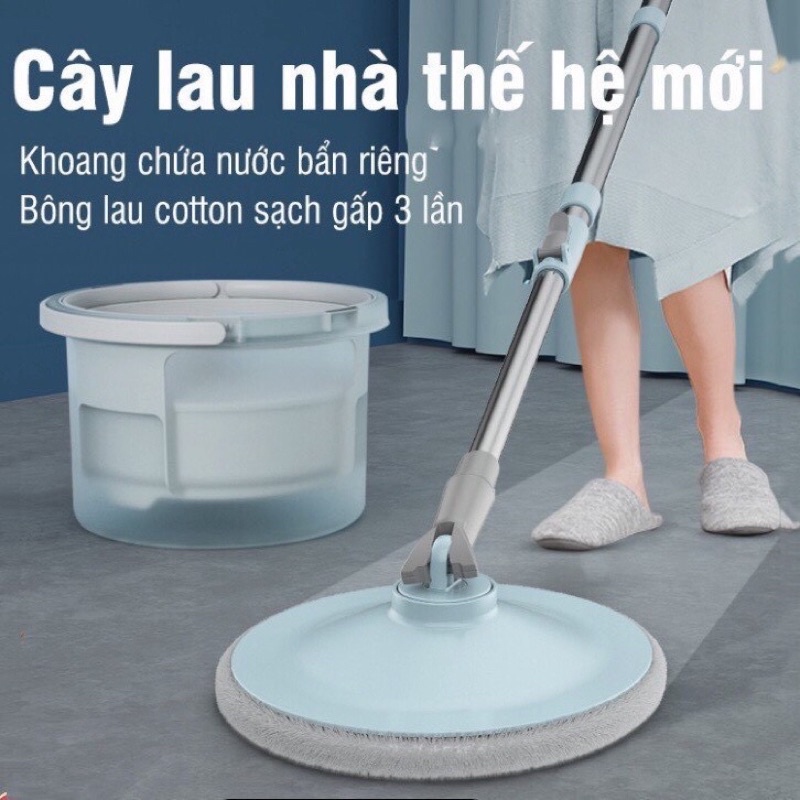 - Bàn lau hình tròn, đường kính 25cm có thể xoay 360 độ tiện lợi, bàn lau to giúp lau nhanh hơn và hiệu quả nhân đôi. Giẻ lau chất liệu microfiber rất dày thấm hút nước cực tốt, hút bụi và lông tóc hiệu quả.