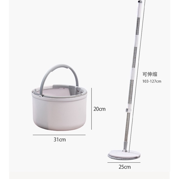 - Bàn lau hình tròn, đường kính 25cm có thể xoay 360 độ tiện lợi, bàn lau to giúp lau nhanh hơn và hiệu quả nhân đôi. Giẻ lau chất liệu microfiber rất dày thấm hút nước cực tốt, hút bụi và lông tóc hiệu quả.