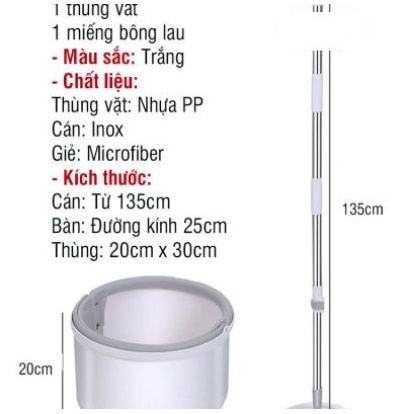 + Cây lau chất liệu inox không gỉ, kích thước dài từ 111-134cm, bàn lau hình tròn
