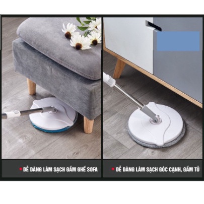 - Bàn lau hình tròn, đường kính 25cm có thể xoay 360 độ tiện lợi, bàn lau to giúp lau nhanh hơn và hiệu quả nhân đôi. Giẻ lau chất liệu microfiber rất dày thấm hút nước cực tốt, hút bụi và lông tóc hiệu quả.