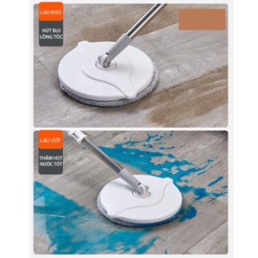 - Bàn lau hình tròn, đường kính 25cm có thể xoay 360 độ tiện lợi, bàn lau to giúp lau nhanh hơn và hiệu quả nhân đôi. Giẻ lau chất liệu microfiber rất dày thấm hút nước cực tốt, hút bụi và lông tóc hiệu quả.