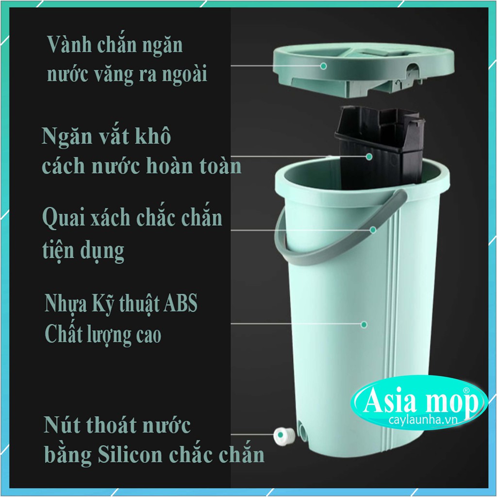 Cây lau nhà thông minh ASIA MOP có kèm thùng, bàn lau nhà hình chữ nhật. Tính năng ưu việt vì đây là cây lau nhà thông minh tự vắt được, lau nhiều bề mặt: gạch men, sàn xi măng bóng, sàn gỗ, lát đá, vách kính, cửa sổ,👉 Bộ lau nhà thông minh ASIA MOP đầy đủ bao gồm :