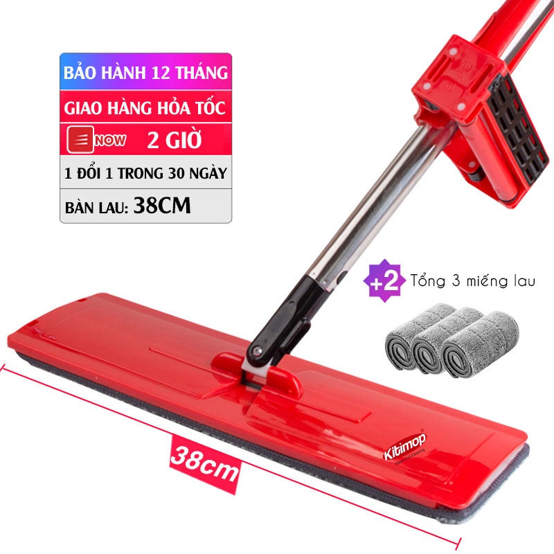 - Cây lau nhà tự vắt Kitimop-Red có bàn lau phẳng hình chữ nhật, có thể sử dụng để lau sàn nhà, cửa kính, trần nhà, cửa sổ, lau tường ...; Thậm chí, nếu bông lau khô còn có thể sử dụng làm chổi quét nhà, đầu bàn lau có gắn lưỡi cao su có thể gạt nước.Thông tin về sản phẩm: