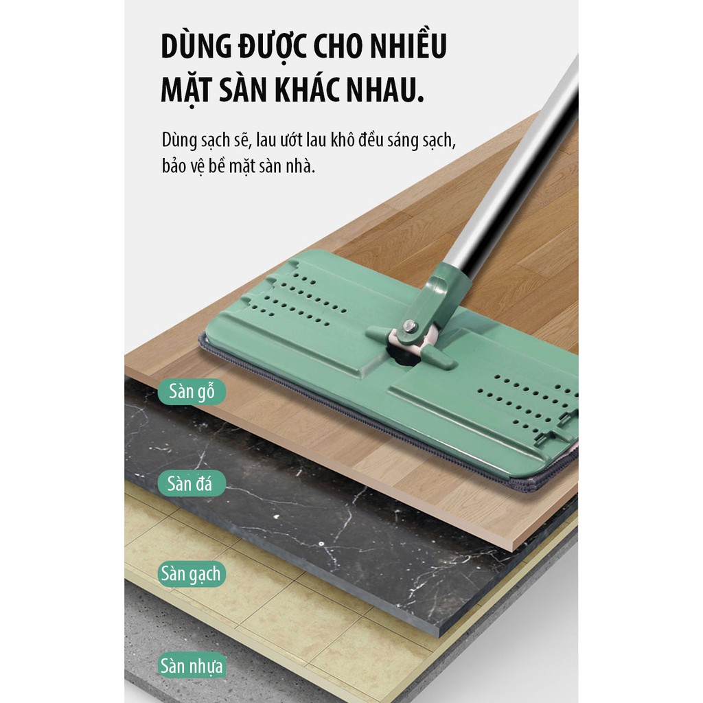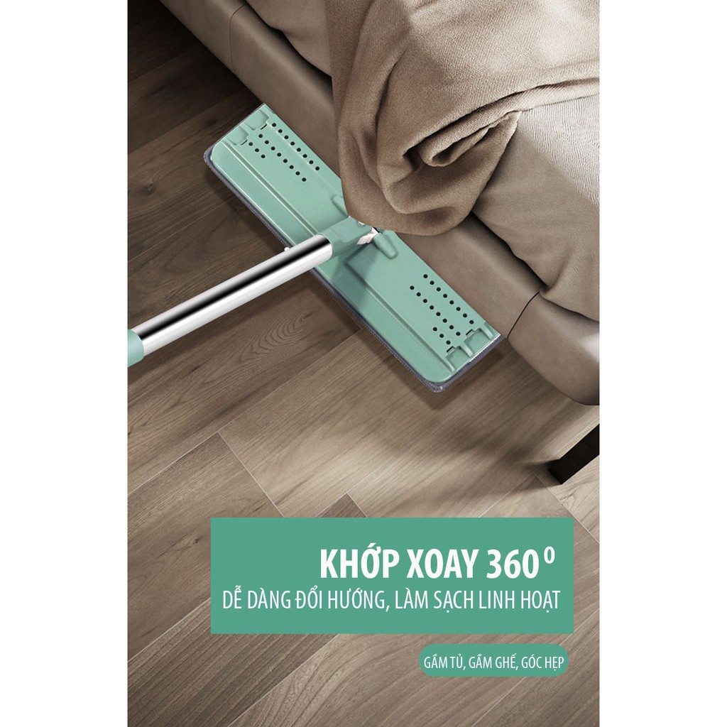 - Cây lau sàn chất liệu inox ống dày không gỉ, bàn lau xoay 360 độ di chuyển linh hoạt vào những vị trí như gầm tủ ghế, góc hẹp.