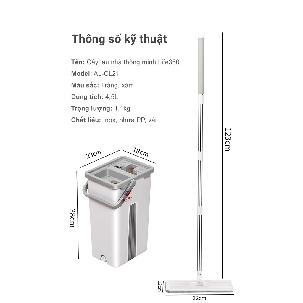 Nhà cửa & Đời sống > Dụng cụ chăm sóc nhà cửa > Cây lau nhà || Bộ lau nhà thông minh Life360 AL-CL21Còn hàng