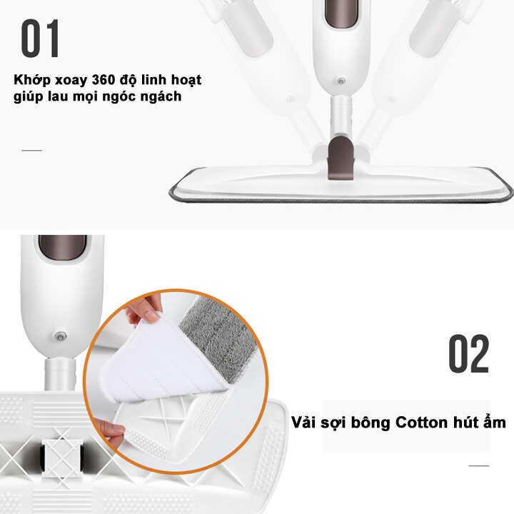 ƯU ĐIỂM SẢN PHẨM: Cây lau nhà phun sương xoay 360 độ