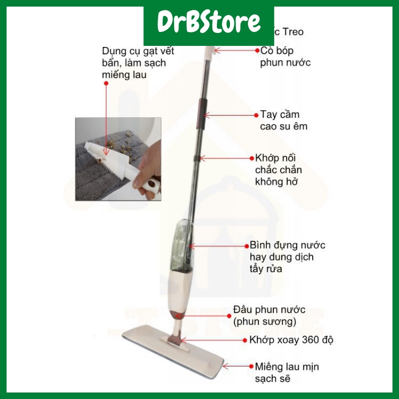 Cây lau nhà thông minh phun sương cao cấp, lau dọn dễ dàng 2 trong 1 đầu xoay 360 độ DrbStore