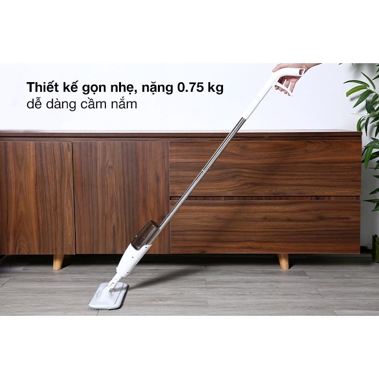 - Bước 3: Với tay cầm thao tác 1 tay, bạn dễ dàng phun sương và tiến hành lau các bề mặt