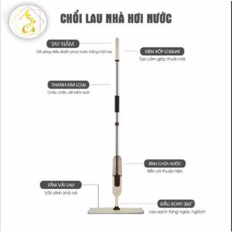 - Sản phẩm bao gồm: 1 thân cây lau nhà, 1 bình nước đính kèm, 1 bông lau mềm cao cấp.