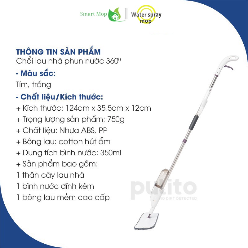 - Sản phẩm bao gồm: 1 thân cây lau nhà, 1 bình nước đính kèm, 1 bông lau mềm cao cấp