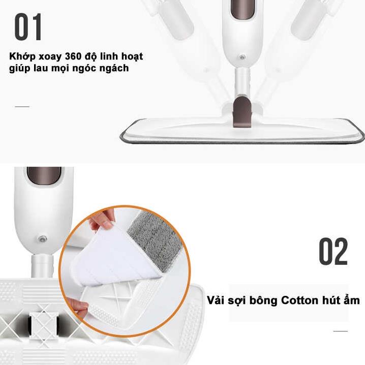 Cây lau nhà thông minh phun sương lau dọn dễ dàng 2 trong 1 đầu xoay 360 độ