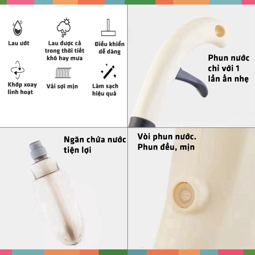 Cây Lau Nhà Thông Minh Phun Sương Cao Cấp, Lau Dọn Dễ Dàng 2 trong 1 đầu xoay 360 độ
