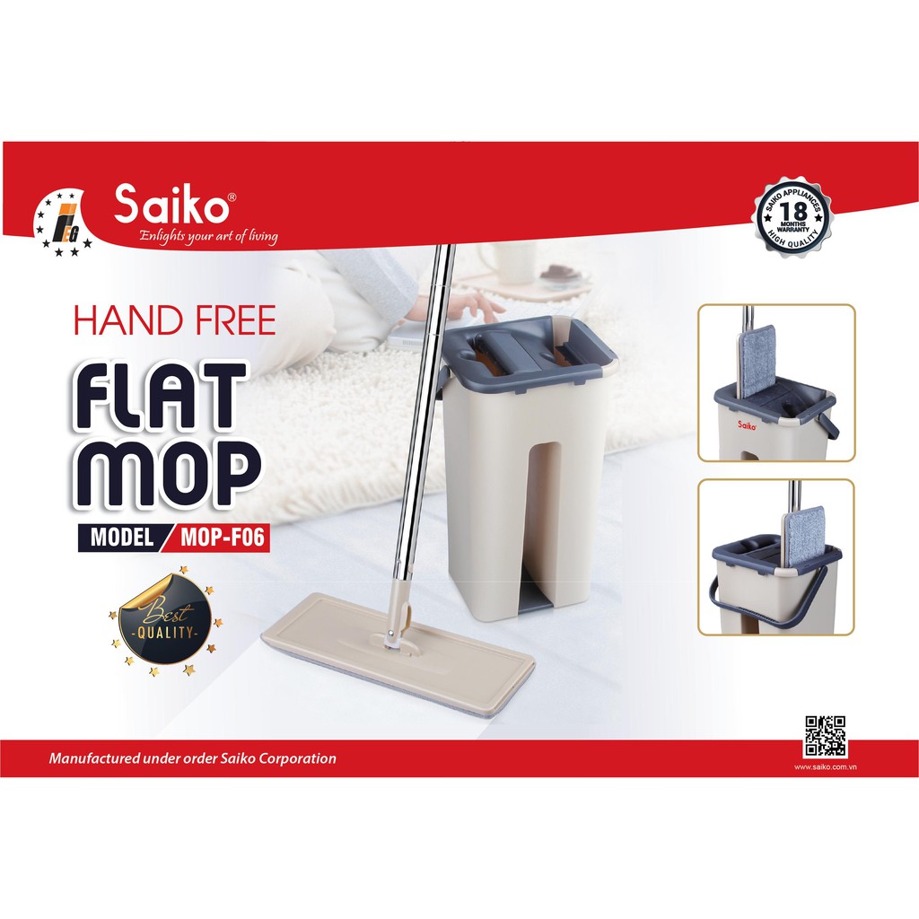 Cây lau nhà vắt phẳng thông minh xoay 360 độ SAIKO MOP-F06 thế hệ mới.Được thiết kế thông minh với đầu lau sàn hình chữ nhật tạo nên lực ly tâm lớn giúp nhẹ nhàng lau sạch mọi vết bẩn trên sàn nhà hay mọi ngõ ngách, góc hẹp trong ngôi nhà nhanh chóng, sạch sẽ và nhẹ nhàng.
