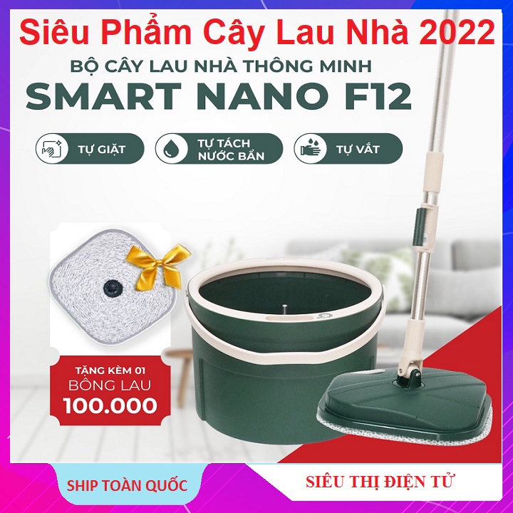 SẢN PHẨM MỚI RA MẮT 2022 CÂY LAU NHÀ THÔNG MINH SMART NANO F12Cây lau nhà SMART NANO F12 có cấu tạo thông minh với đầu lau xoay 360 độ linh hoạt, bông lau Nano mềm mại, thấm hút tốt cho tốc độ làm sạch sàn nhanh, sàn nhà được làm khô nhanh chóng.