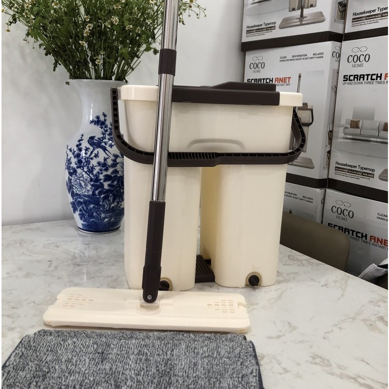 - Thùng 2 ngăn : 1 ngăn vắt khô tự động - 1 ngăn chứa nước để giặt cây lau