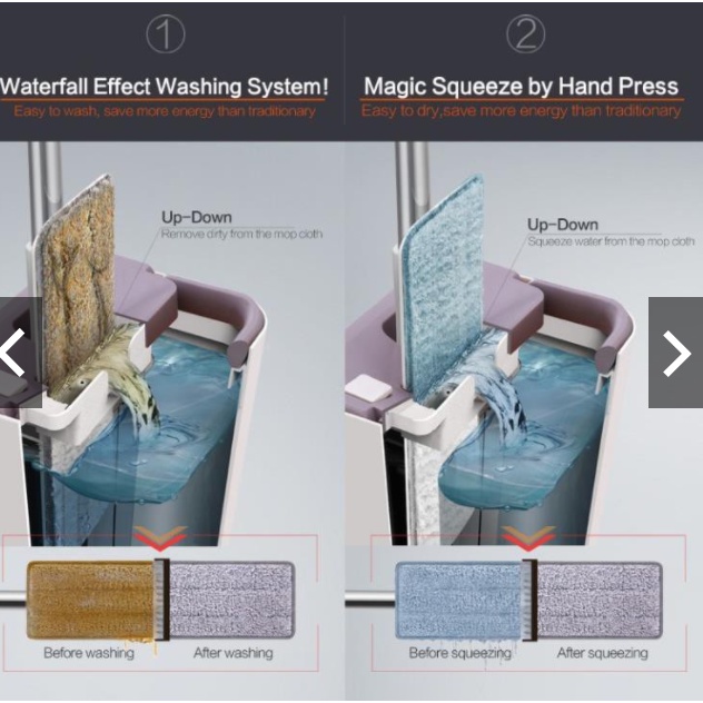 + Có ngăn đựng nước và lỗ thoát nước bẩn + Hai ngăn vắt nước khô ráo + Bông lau mau khô, thấm hút