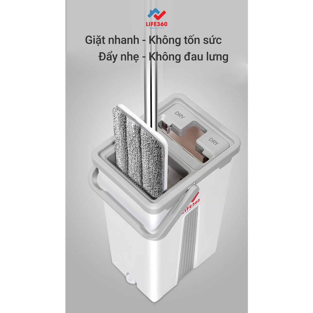 Nhà cửa & Đời sống > Dụng cụ chăm sóc nhà cửa > Cây lau nhà || Bộ lau nhà thông minh tự vắt LIFE 360 AL-CL21Còn hàng