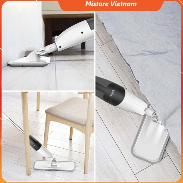 > Được trang bị két nước với dung tích chứa 350ml để bạn có thể sử dụng chứa nước lau nhà giúp sàn nhà sạch hơn mà không cần thêm một chậu nước đi kèm. Bạn có thể cho nước lau sàn trực tiếp vào két nước, sử dụng tay bóp xịt phun sương với diện tích rộng tới 95cm phía trước tấm lau sàn.