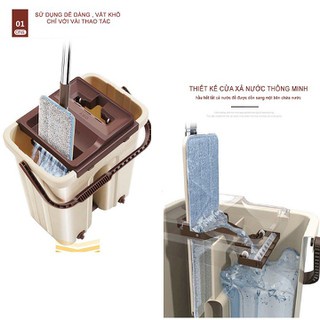- Bộ sản phẩm gồm: 1 cán lau, 1 thùng vắt, 2 miếng lau