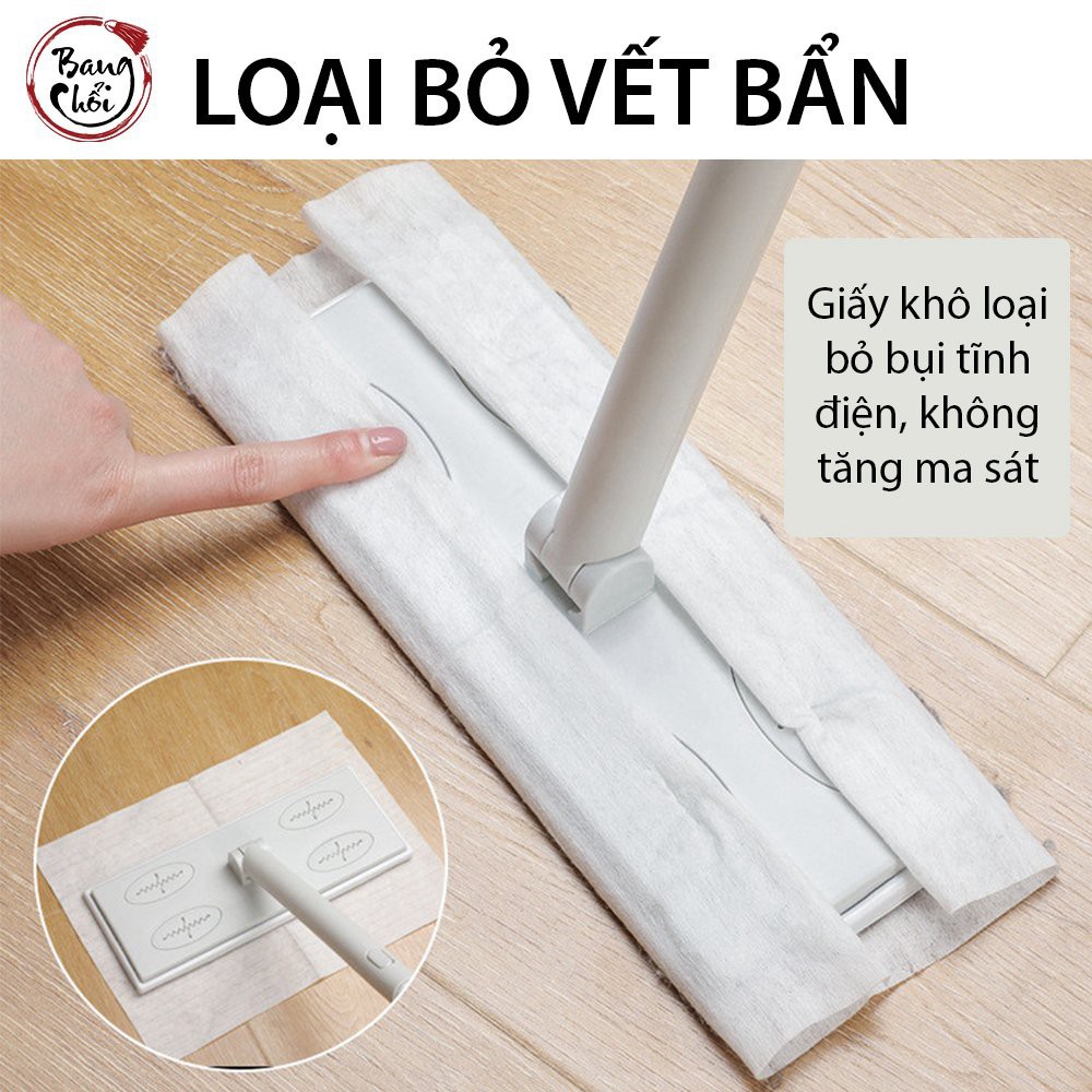 👉 Sử dụng giấy lau rời có tĩnh điện có thể thay thế thường xuyên sau mỗi lần sử dụng.Giấy lau rời được làm từ chất liệu vải không dệt có thành phần cấu tạo chủ yếu là 60% bột gỗ nhằm thấm hút nước nhanh chóng, ngậm nước mạnh gấp 11 lần giẻ lau thông thường để lau sàn siêu sạch mà không gây ướt nước nhiều. Chính vì vậy mà sàn có thể nhanh khô trong phút chốc và hạn chế được tình trạng trơn trượt.