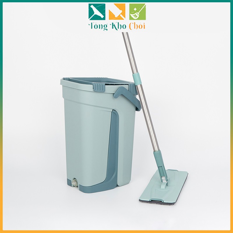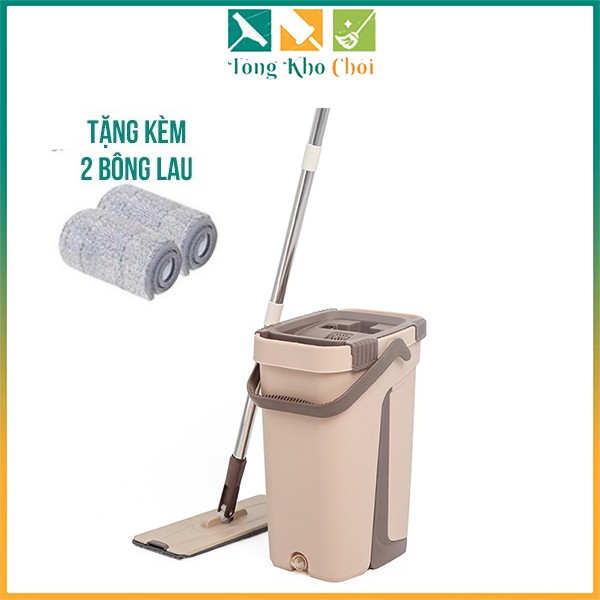 - Bộ sản phẩm gồm: 1 cây lau nhà thông minh, 1 thùng vắt, 2 miếng lau
