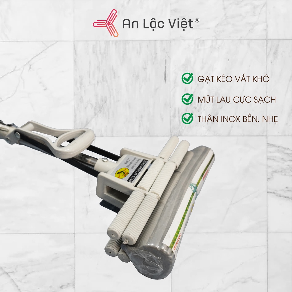 - Cây lau bằng inox, chất liệu cao cấp, điều chỉnh để vặn vắt khô mút xám.