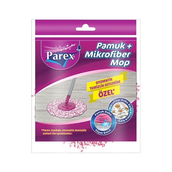 - Tương thích với tất cả dòng sản phẩm bộ lau sàn Parex. (Twister, Tornado, Spinner, Quick)