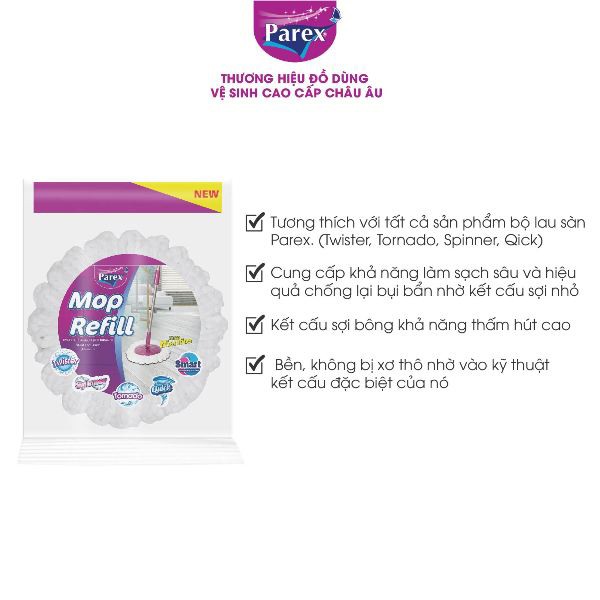 Giới thiệu Bông lau nhà tròn thay thế vào các bộ lau nhà 360 độ Parex Spinner, Twister, Tornado, Tinny, Quick