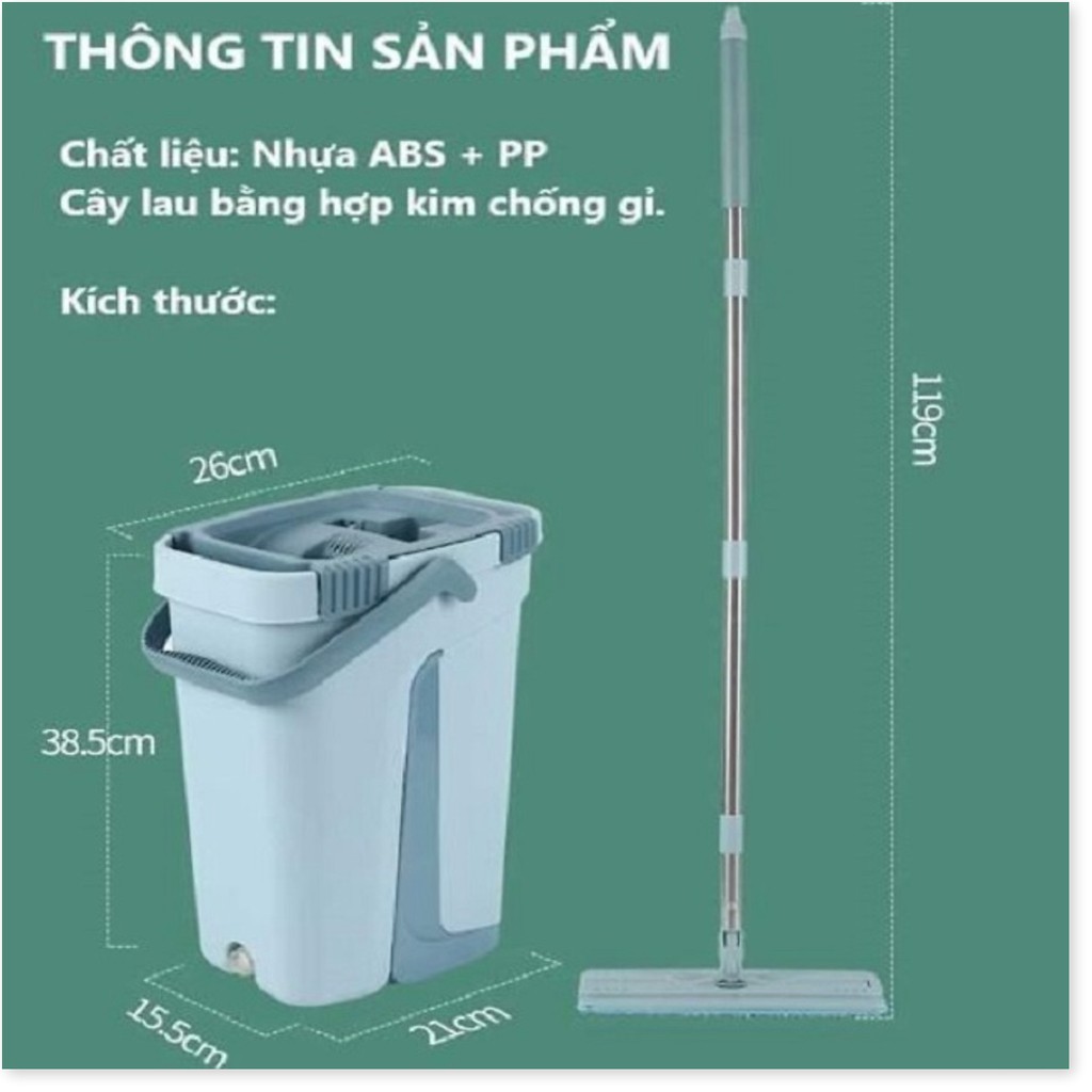 Cây lau nhà tự vắt 2 trong 1 kèm thùng 2 bông lau -giao màu ngâu nhiên DV001Dài x rộng x cao (cm): 26 x 21 x 37cm