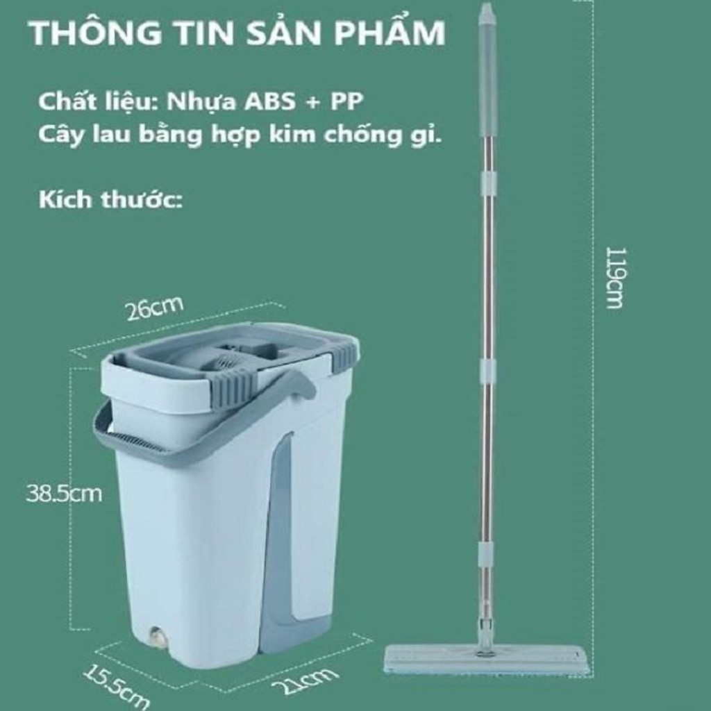 Cây lau nhà tự vắt 2 trong 1 kèm thùng 2 bông lau -giao màu ngâu nhiên DV001Dài x rộng x cao (cm): 26 x 21 x 37cm