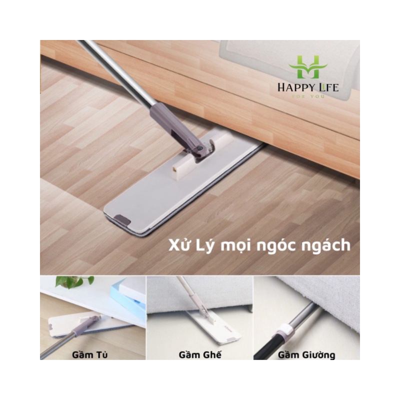 - Bộ cây lau nhà thông minh tách nước bẩn có bàn lau thiết kế độc đáo hình chữ nhật dạng dẹt, với khả năng xoay 360 độ đa chiều linh hoạt làm sạch mọi vị trí, ngóc ngách dù trên cao hay dưới gầm bàn, gầm ghế. Chất liệu vải vi sợi Microfiber hút bẩn cực mạnh, hút ẩm tốt, độ bền cao, có thể tháo lắp dễ dàng, giặt máy cực tiện lợi